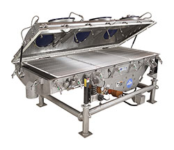 V3-CIP 可根据您的工艺进行定制,以产生椭圆或线性运动。专利驱动器产生的高重力可实现更好的输送和更高的吞吐量。 CIP 功能和模块化设计使 V3-CIP 在生产运行之间非常容易清洁,并且可以对机器进行抛光以消除材料容易滞留的缝隙。与任何其他矩形分离器设计相比,铰接盖使更换屏幕更加容易。